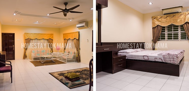 Homestay Tok Mama dilengkapi 1 bilik air dan 3 buah bilik tidur berasingan, yang mana kesemuanya mempunyai almari sendiri dan juga kipas. Untuk bilik tidur 1 dan 3, tetamu akan menggunakan katil berkembar dan kedua-kedua biliknya berpendingin hawa. Jika tetamu lebih gemar membersihkan diri menggunakan pemanas air, host telah pun melengkapkan bilik airnya dengan alatan tersebut.