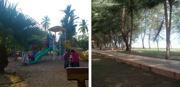 Gerai-gerai makan sekitar pantai memang banyak, boleh beli keropok lekor, celup tepung dengan air kelapa. Taman permainan ada untuk bagi anak-anak kecil main. Paling penting, gazebo ada banyak kalau nak jadikan tempat berkelah atau tempau berlindung dari matahari.