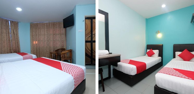 Bilik-bilik yang ada dekat sini, bilik single, deluxe queen, deluxe twin, superior family, superior queen, dengan king. Dalam 1 km je anda boleh jumpa banyak sungguh kedai makan sedap-sedap. Cerek masak air pun ada, senanglah anda nak buat kopi ke masak maggi ke.
