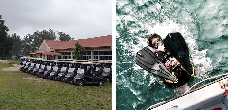 Padang golf dekat sini ada jumlah lubang-lubang yang standard dan selalunya sama dekat padang lain, iaitu 18 lubang. Untuk course seorang pemain golf pro, Kelab Golf Desa Dungun buka untuk par-72. Untuk beginner, harga untuk 18 lubang RM40, kalau nak cuba 9 je pun okay, RM20 je. Nak naik buggy sebab penat jalan, mahal sikitlah harga masuk driving range, 18 lubang RM60, 9 lubang pula RM30.