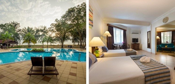 Bilik-bilik yang ditawarkan dekat resort ni termasuk bilik deluxe, double, deluxe double, deluxe triple, family, dengan suite. Boleh pilih nak bilik yang ada pemandangan taman atau pemandangan laut. Kalau nak ke Pantai Teluk Mak Nik semula, perjalanan ambil masa 8 minit. Wi-fi diberikan akses percuma jadi resort ni memang berbaloi.