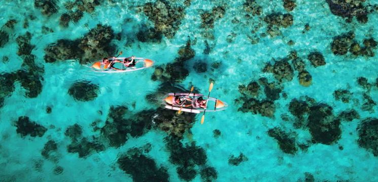Berkayak di lautan boleh disewa daripada resort tempatan.