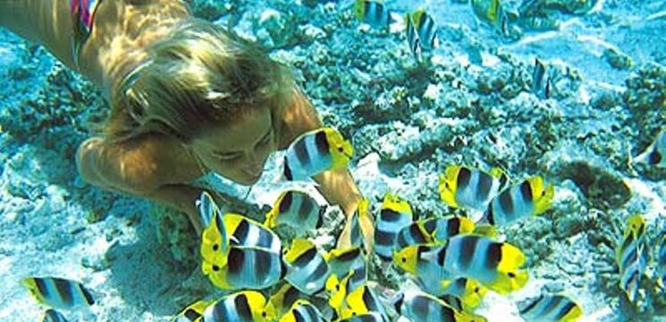 Bila di Pulau Pangkor, pengunjung boleh menyewa peralatan menyelam permukaan yang terdapat di jeti dan di atas pulau yang lebih murah, dan mereka akan dapat berenang di kalangan parrotfish merah jambu-hijau, wrass bulan lutsinar dan terumbu karang yang indah. Ombak lautan lembut dan perairan di sini cetek, walaupun untuk kanak-kanak.